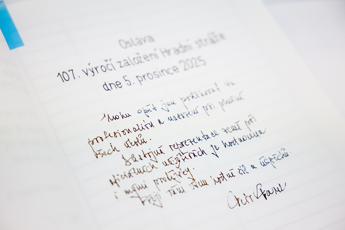 V pátek 5. prosince 2025 jsme na Pražském hradě oslavili 107 let od založení Hradní stráže. Program začal v katedrále sv. Víta, Václava a Vojtěcha krásným Adventním koncertem Hudby Hradní stráže a Policie ČR, pěveckého sboru Collegium hortense a Vojenského uměleckého souboru Ondráš. Během koncertu promluvil také pražský arcibiskup Jan Graubner, který připomněl blížící se vánoční čas.