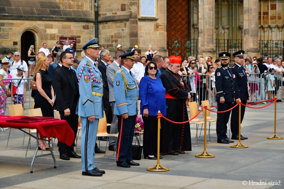 Poté oslavy pokračovaly na III. nádvoří, kde za přítomnosti manželky prezidenta republiky Ivany Zemanové, kardinála Dominika Duky a náčelníka Vojenské kanceláře prezidenta republiky generálporučíka Jana Kašeho byla vojákům předána vyznamenání z rukou velitele Hradní stráže plukovníka Jaroslava Ackermanna. Nástup jednotek zakončil slavnostní pochod před přihlížejícími diváky.